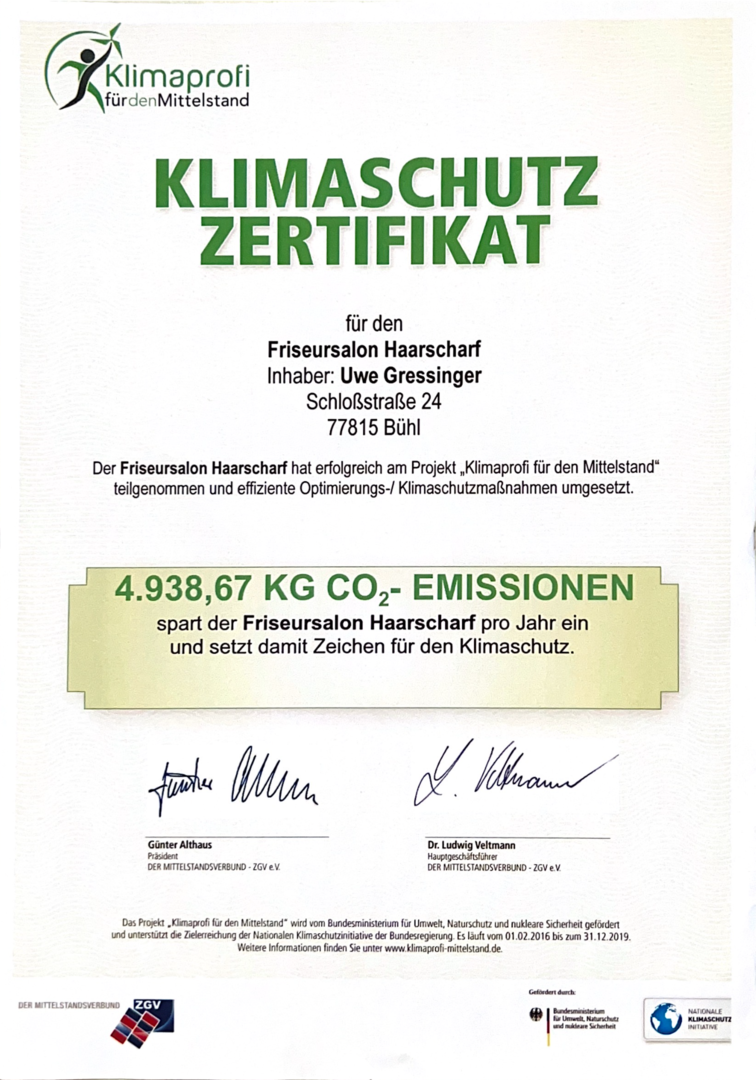 Durch die "Klimaprofis für den Mittelstand" werden wir laufend auf dem neuesten Stand der technologischen und organisatorischen Entwiklungen und Neuerungen in Sachen Klimaschutz und Energieeffizienz gehalten. Schwerpunkt der Beratungsaktivitäten ist bei uns auf den Strom- und Wasserverbrauch gerichtet.